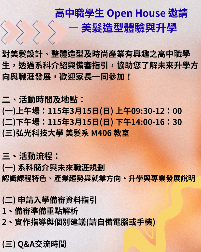 2、對美髮、造型、時尚設計相關領域有興趣之學生